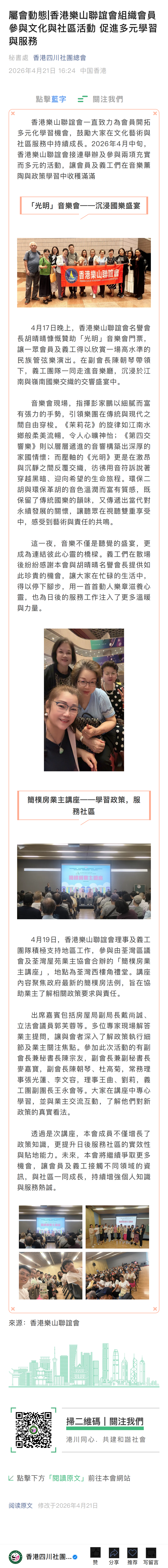 屬會動態|香港樂山聯誼會組織會員參與文化與社區活動 促進多元學習與服務