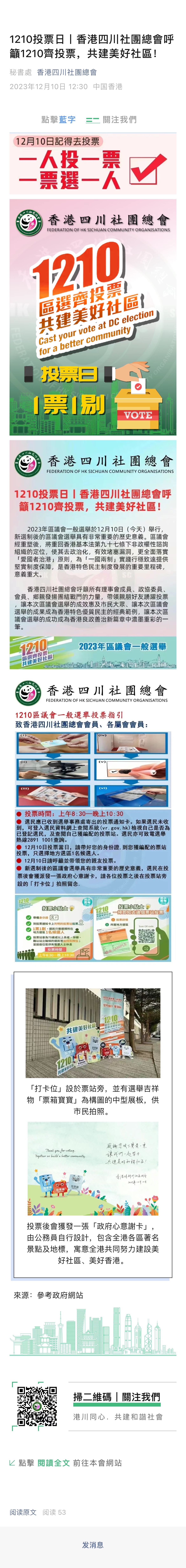香港四川社團總會呼籲1210齊投票,共建美好社區!