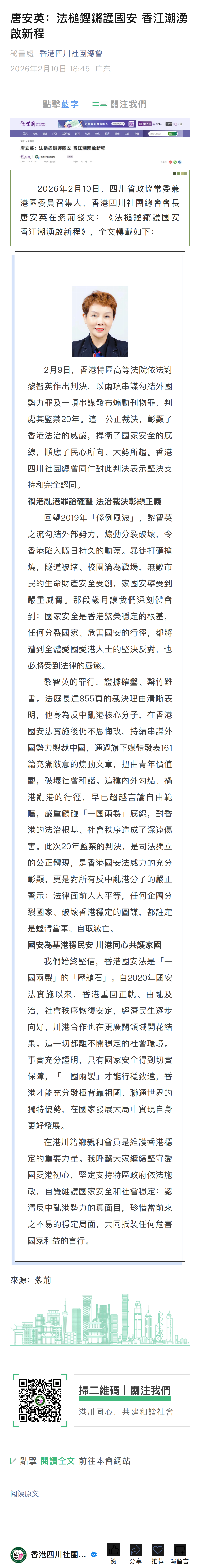 唐安英:法槌鏗鏘護國安 香江潮湧啟新程